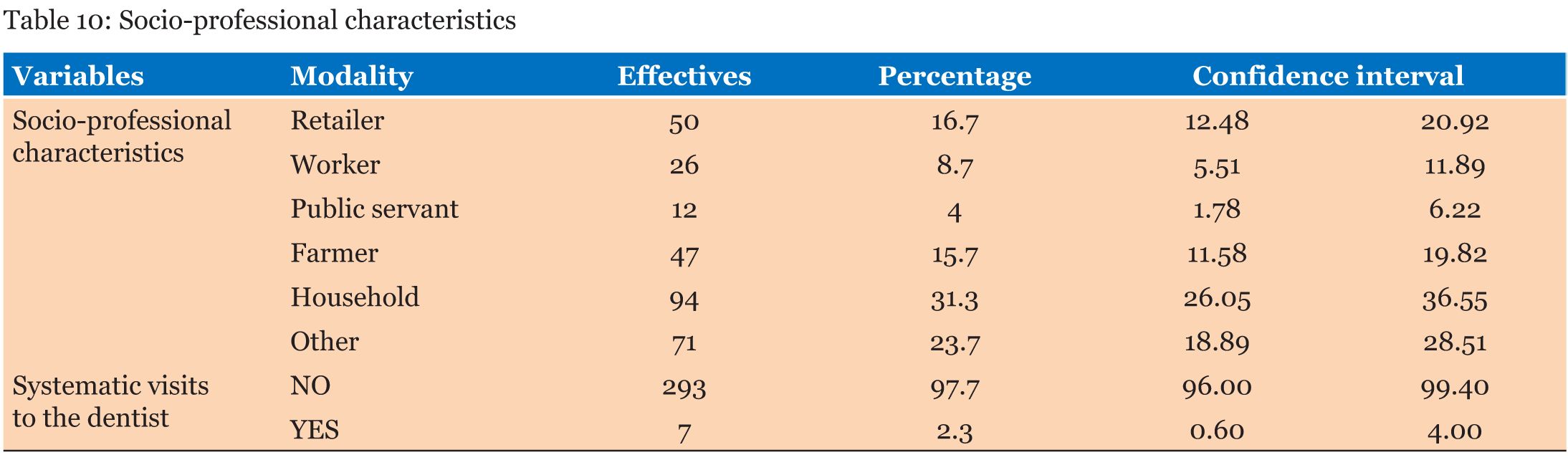 Socio-professional characteristics | ||||||